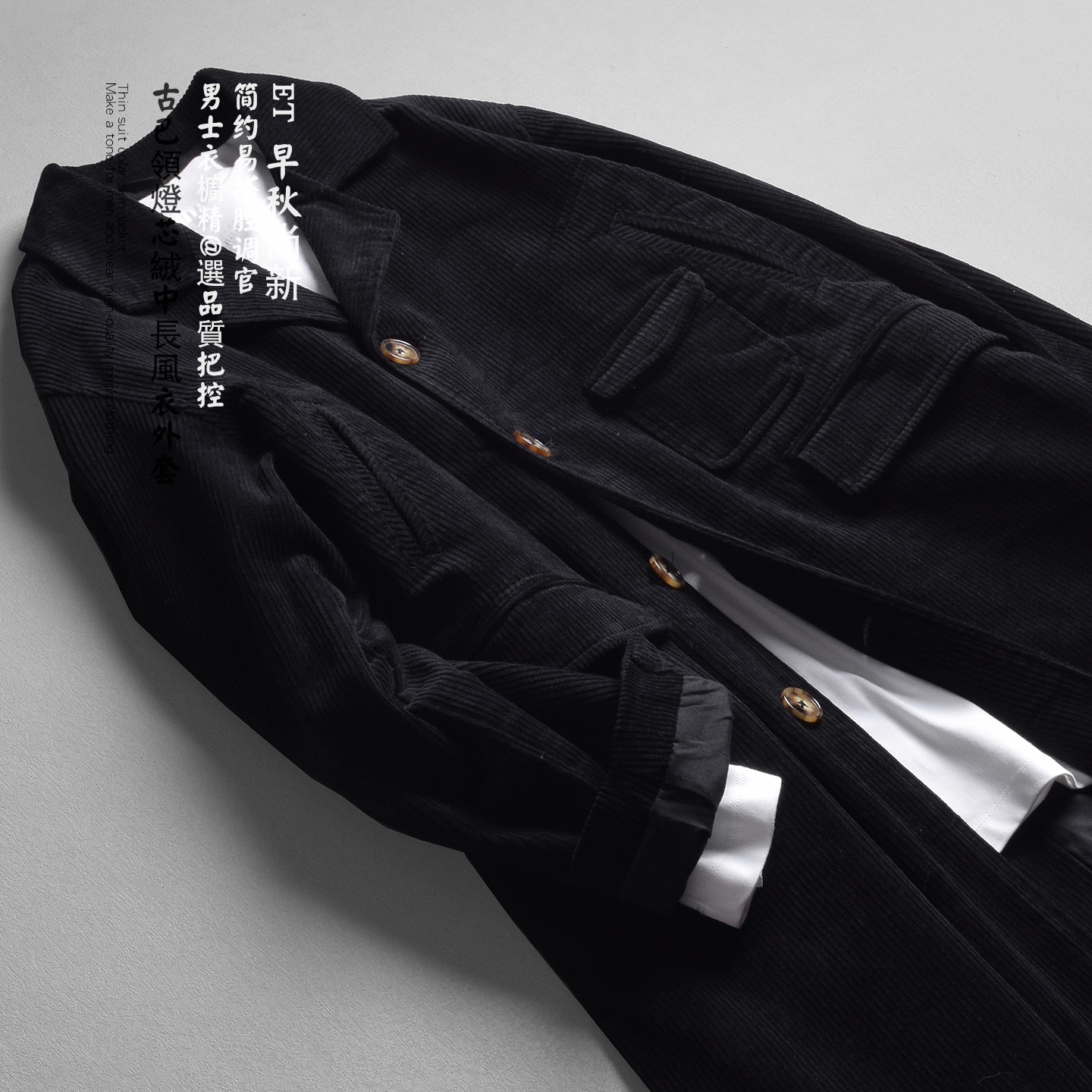 韩版 长款 呢子加厚风衣外套 2025春秋季 V37黑色高级感毛呢大衣男款