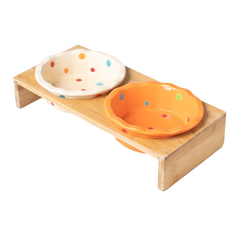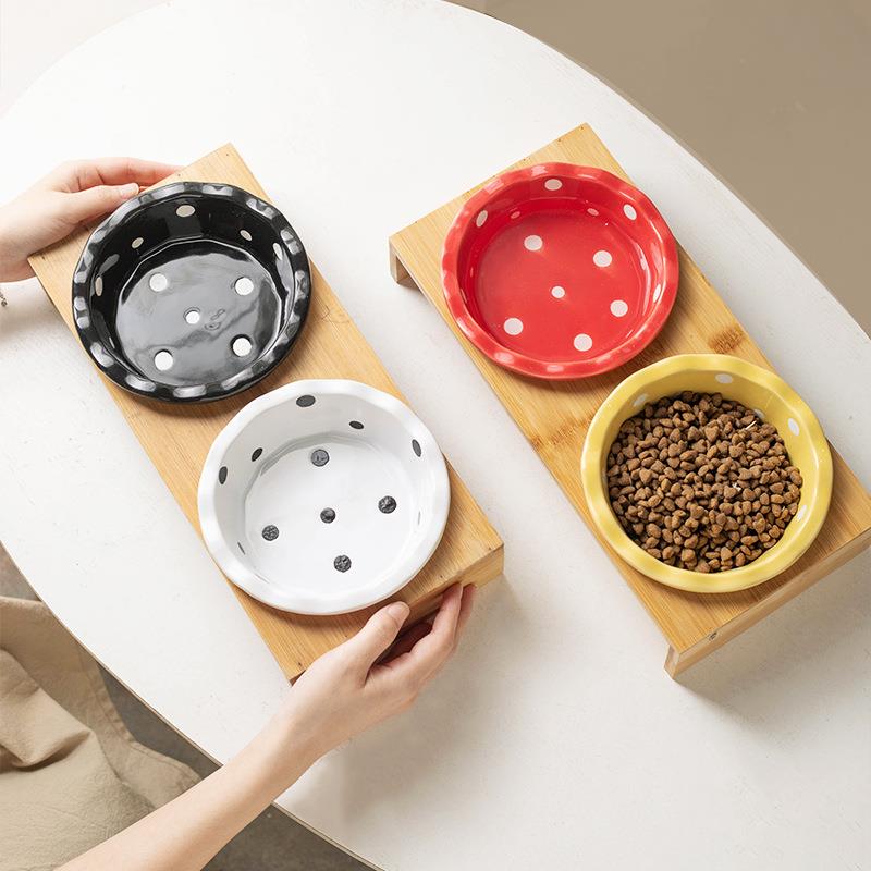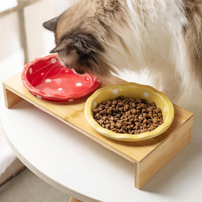 陶瓷猫碗双碗架子保护颈椎防黑下巴猫食盆小型犬泰迪猫粮碗猫用品