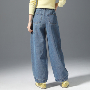 女2025秋季 百家好高腰牛仔裤 新款 印花垂感直筒裤 Basic 长裤 House