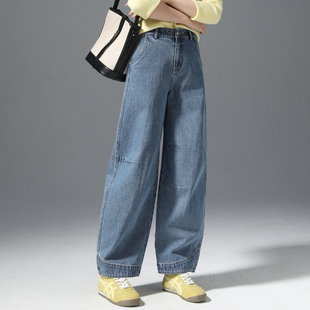 宽松显瘦百搭直筒阔腿牛仔裤 美式 新款 女2025秋季 潮 豹纹休闲裤