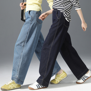 新款 秋季 男士 美式 子 回力黑色牛仔裤 复古阔腿宽松直筒休闲长裤 男款