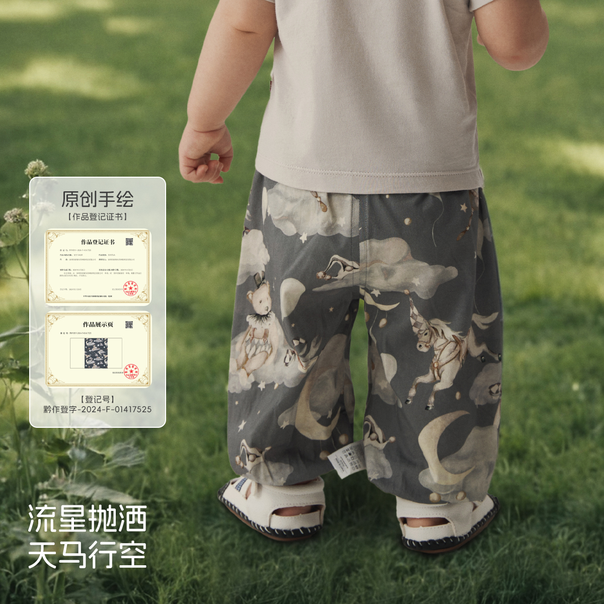 直筒宽松休闲阔腿长裤 子男2025年春秋季 子 小熊织带裤 查尔斯桃心