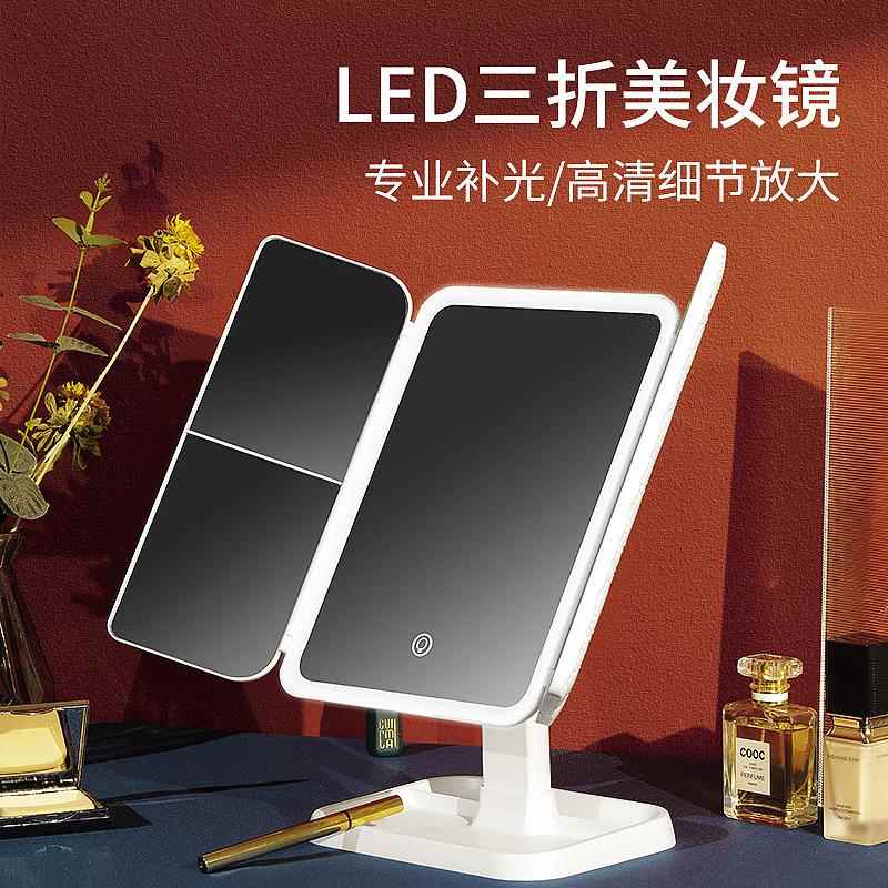 度旋转放大镜厂家现货 触摸感应 新款 LED化妆镜台灯三面折叠
