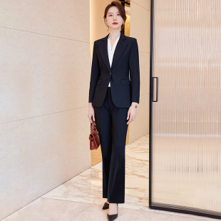 套装 ol职业女裤 时尚 小西装 小清新两件套 2025秋季 外套微喇长裤 新款