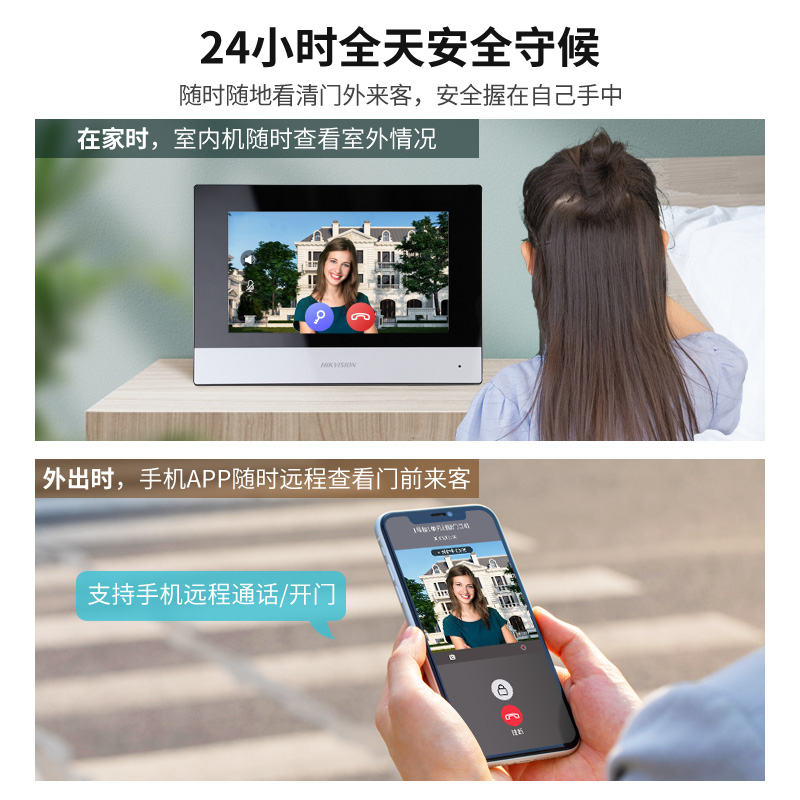 海康威视别墅人脸识别无线可视对讲门禁系统家用开门防水可视门铃