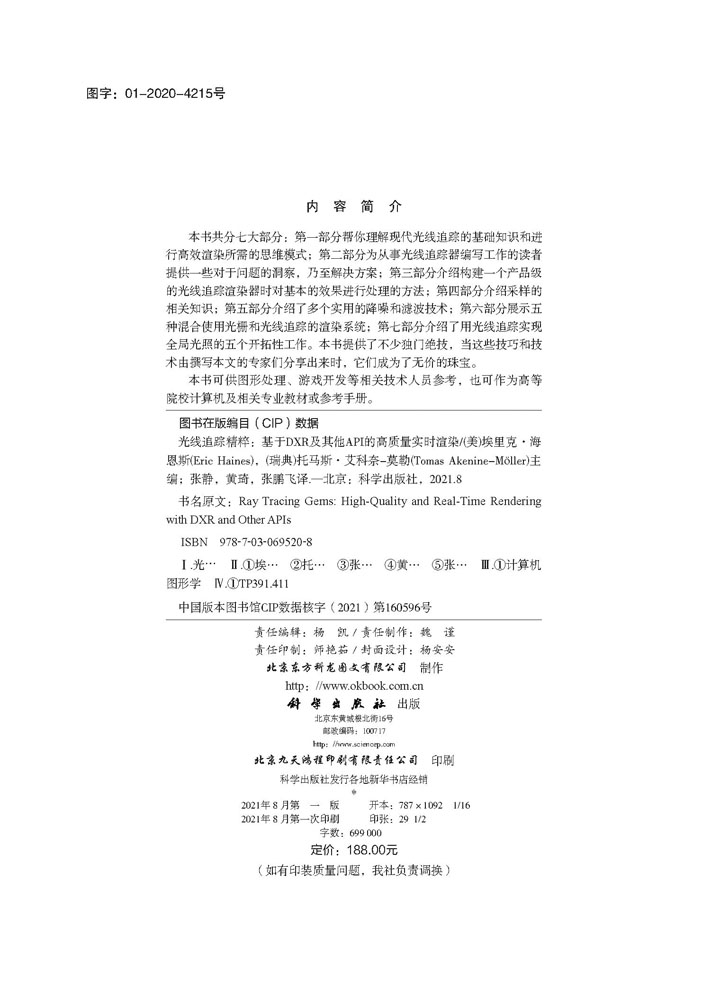 黄琦 张静 张鹏飞 高质量实时渲染 光线追踪精粹——基于DXR及其他API