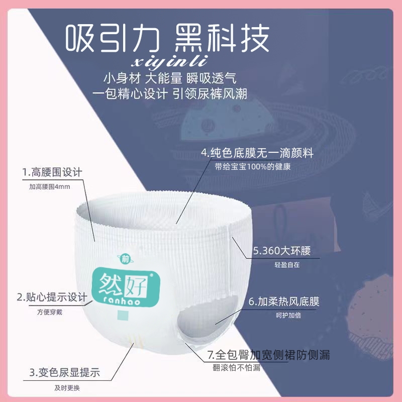XXL 超薄透气亲肤纸尿裤 然好新生婴儿拉拉裤 L男女宝宝尿不湿试用装
