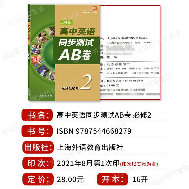 高2下 社 上外版 听音频上海外语教育出版 扫码 英语习题册 高二选修二上下册 同步AB卷 SW版 选择性必修二 高中英语同步测试AB卷