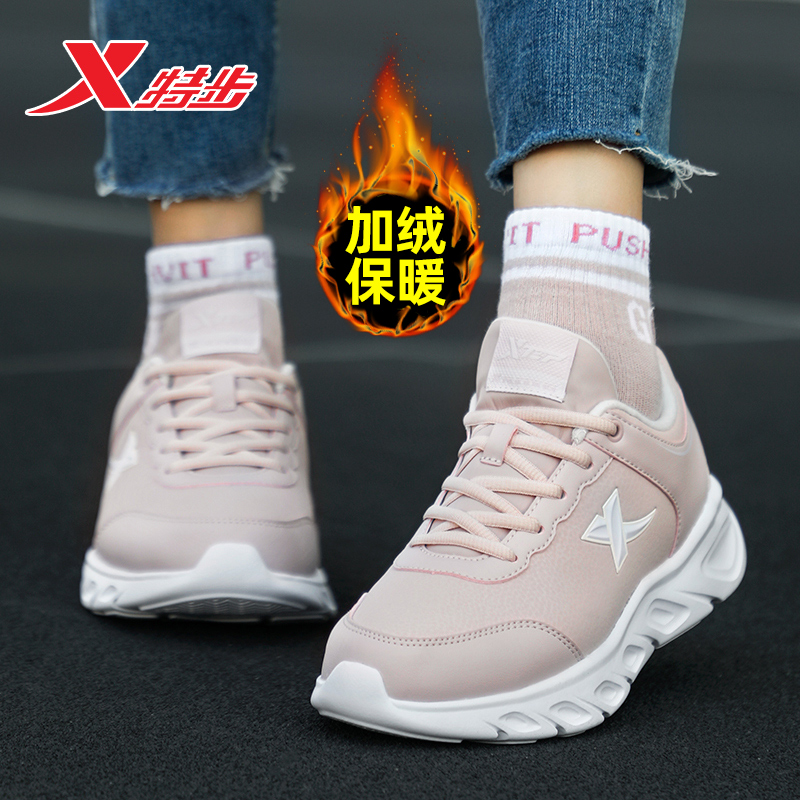 2025秋季 加绒保暖棉鞋 皮面抗寒运动鞋 休闲鞋 女 加厚二棉鞋 特步女鞋