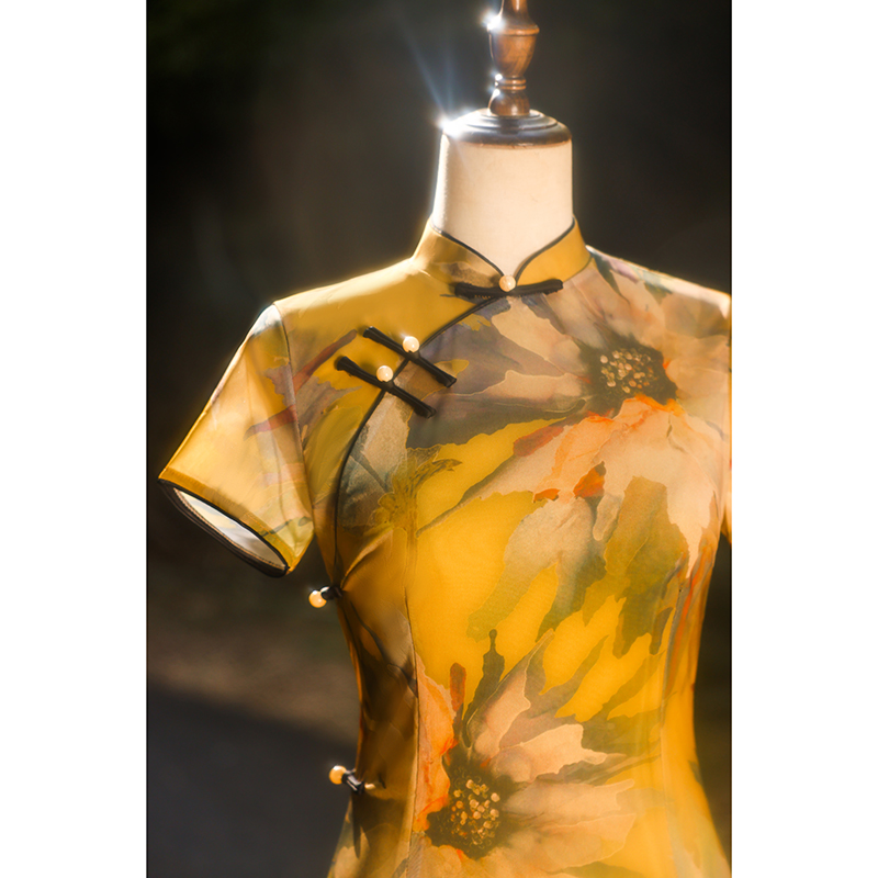 女装 收腰新中式 旗袍连衣裙夏设计感开叉复古气质时尚 中国风改良版