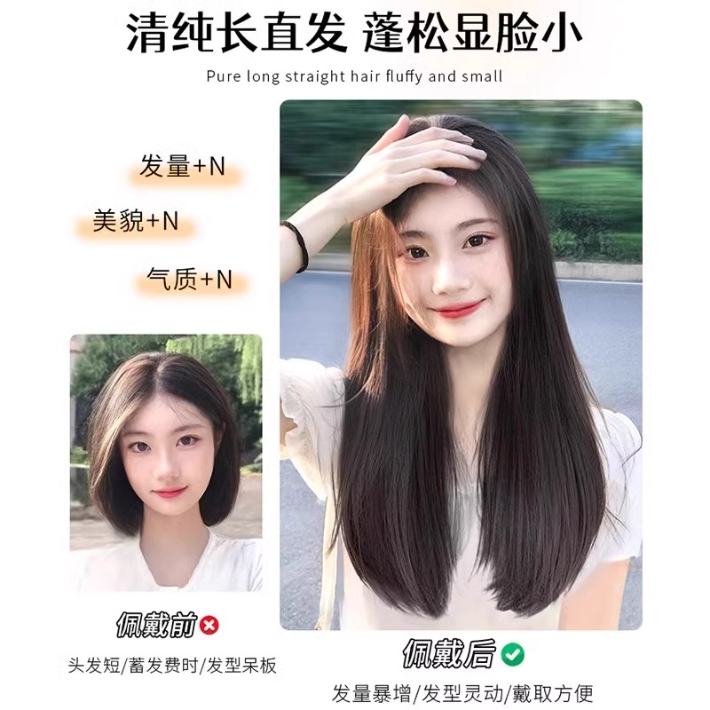 假发片女长发一片式 增发量蓬松隐形无痕仿真发接发贴片直发片长直