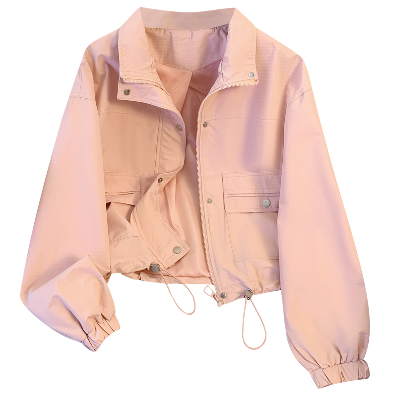宽松夹克 韩版 粉色下摆抽绳立领棒球服休闲外套女装 2025初春秋新款