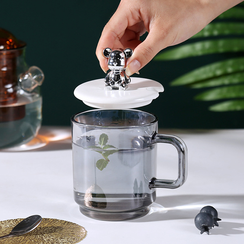 塑料高颜值马克杯盖卡通熊杯盖网红塑料盖牛奶早餐杯盖不含杯子