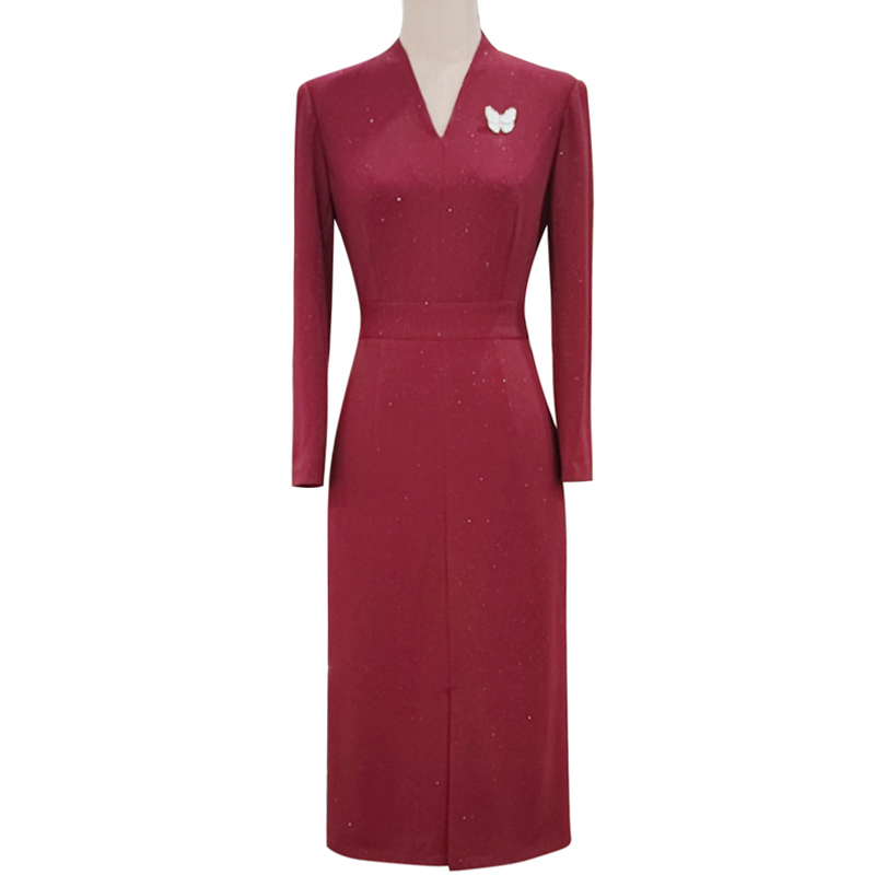 酒红色假两件连衣裙女2025新款 高级感气质显瘦中长裙 喜婆婆婚宴装