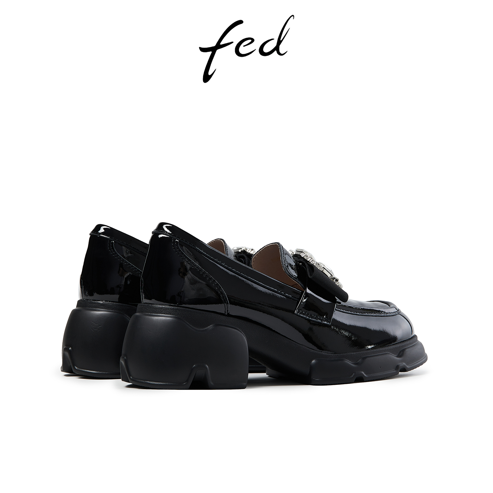 女鞋 新款 水钻粗跟单鞋 真皮鞋 YA076 fed厚底增高乐福鞋 女R0916 秋季