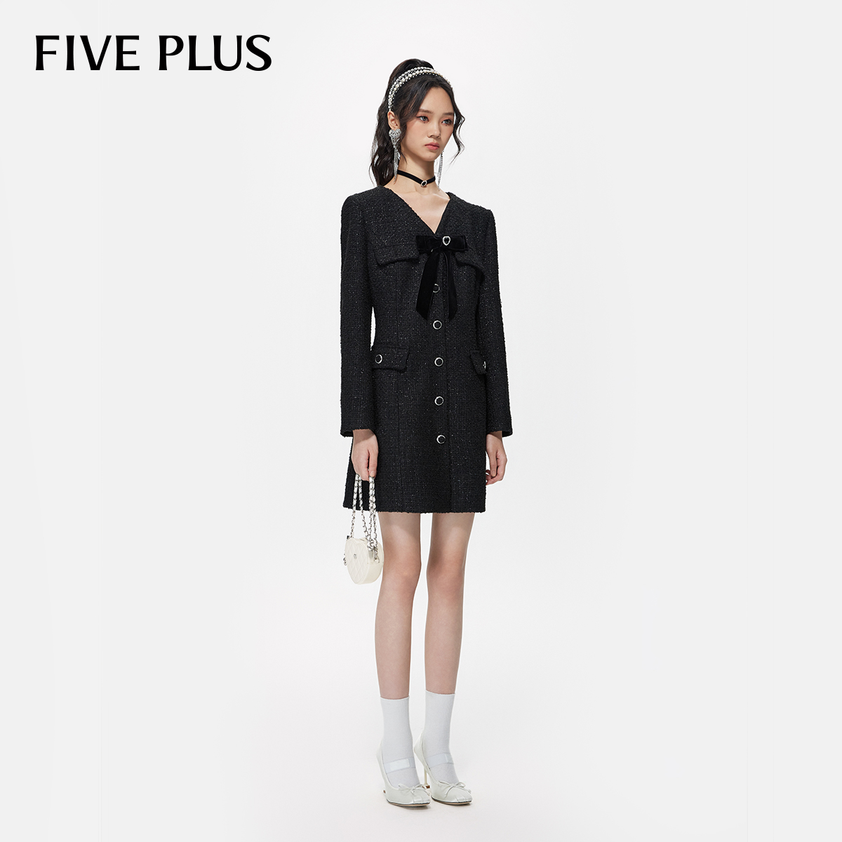 改良新中式 新款 精致提花V领礼服连衣裙女 粉蓝衣橱春秋装 BBLLUUEE