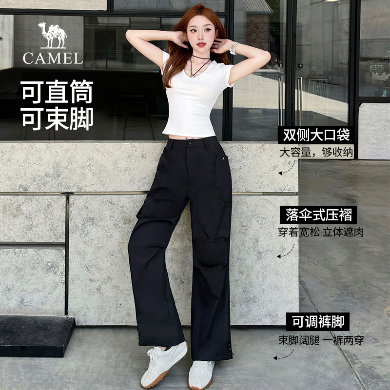 复古直筒束脚抽绳中性休闲伞兵长裤 骆驼女装 2025春夏新款 裤 子 工装