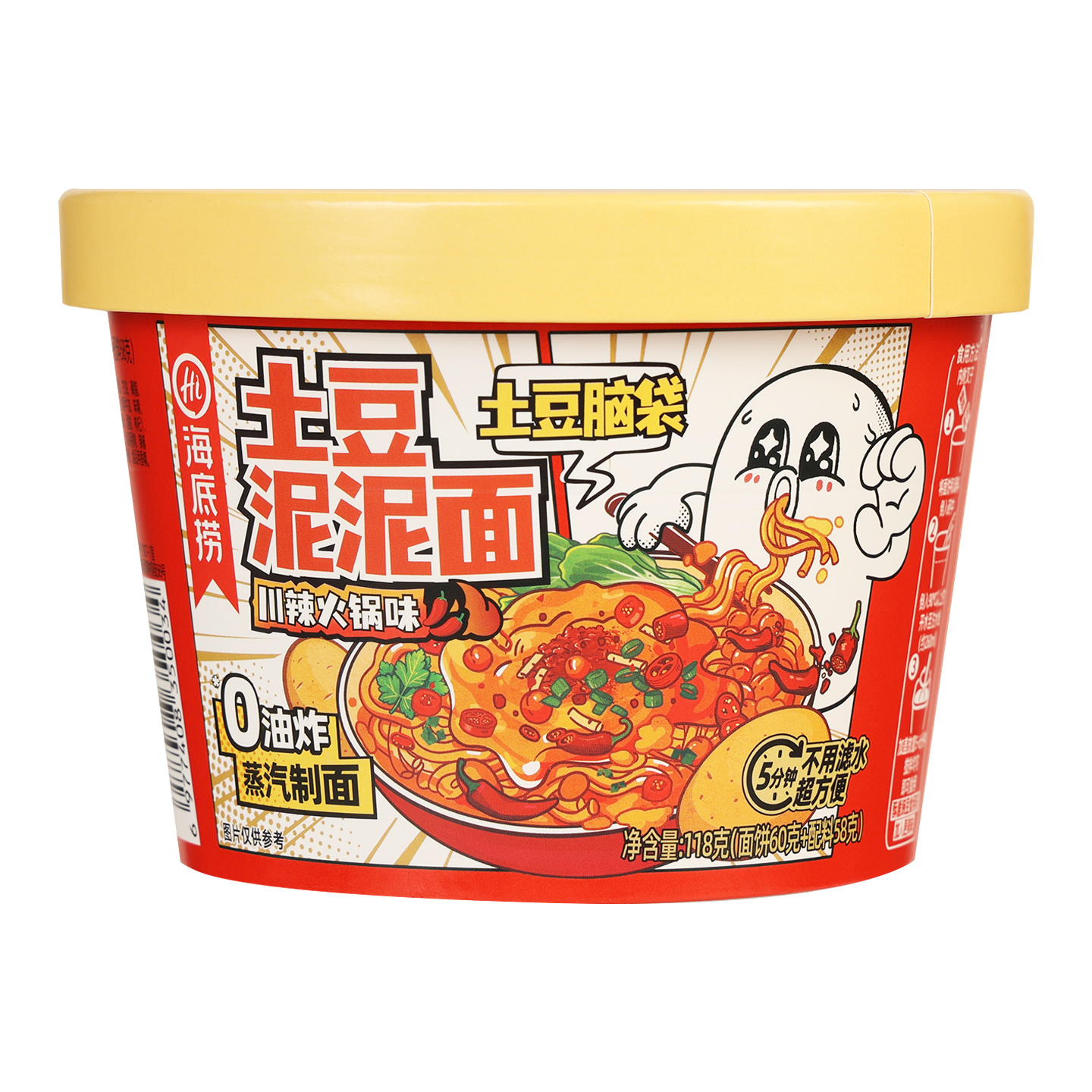 海底捞土豆泥泥面桶装 非油炸拌面速食食品免煮方便面火鸡味泡面