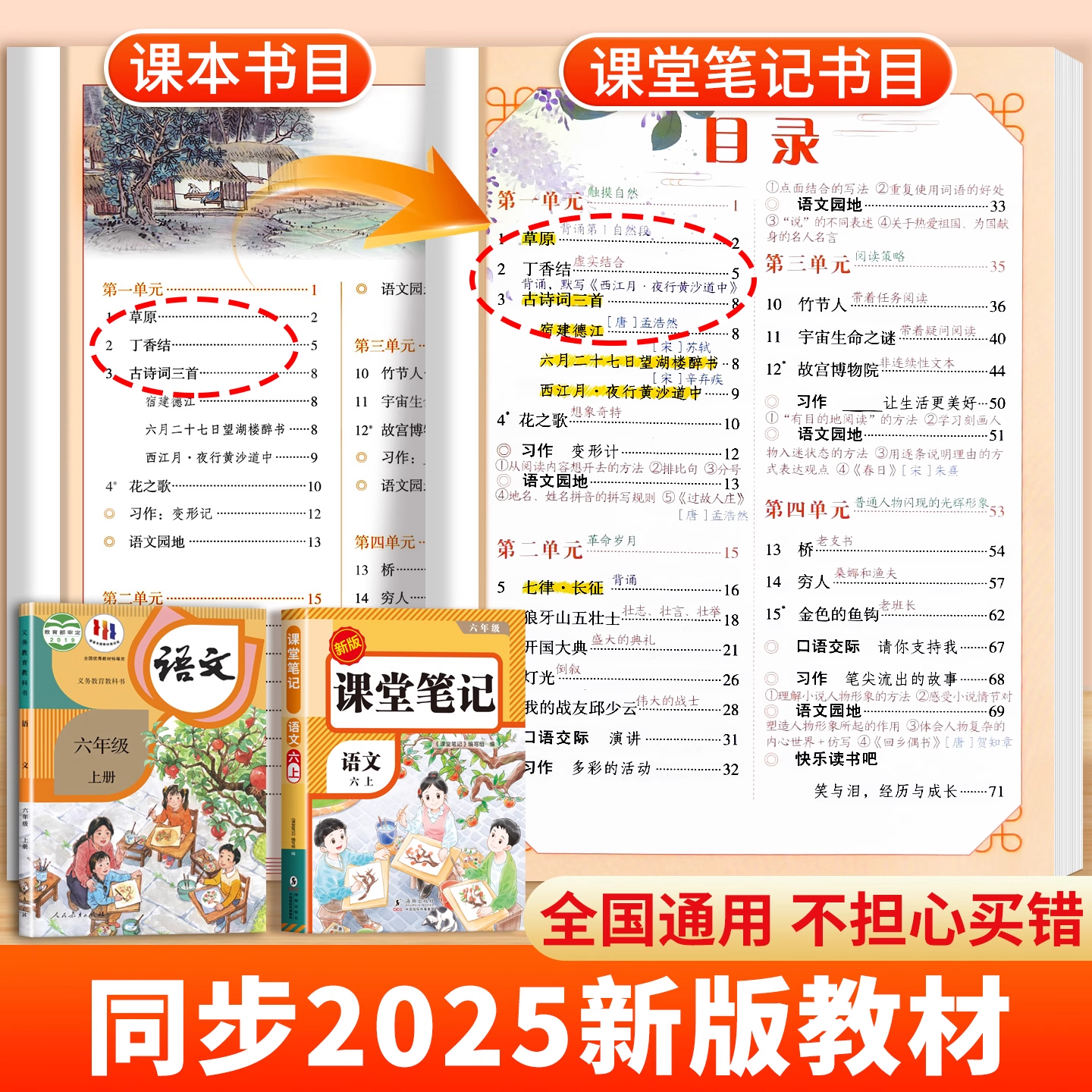 语文数学英语小学教材解读辅导资料全解预习同步6年级下册状元 六年级上册课堂笔记人教版 学霸随堂笔记六上册课本全套 2025新版