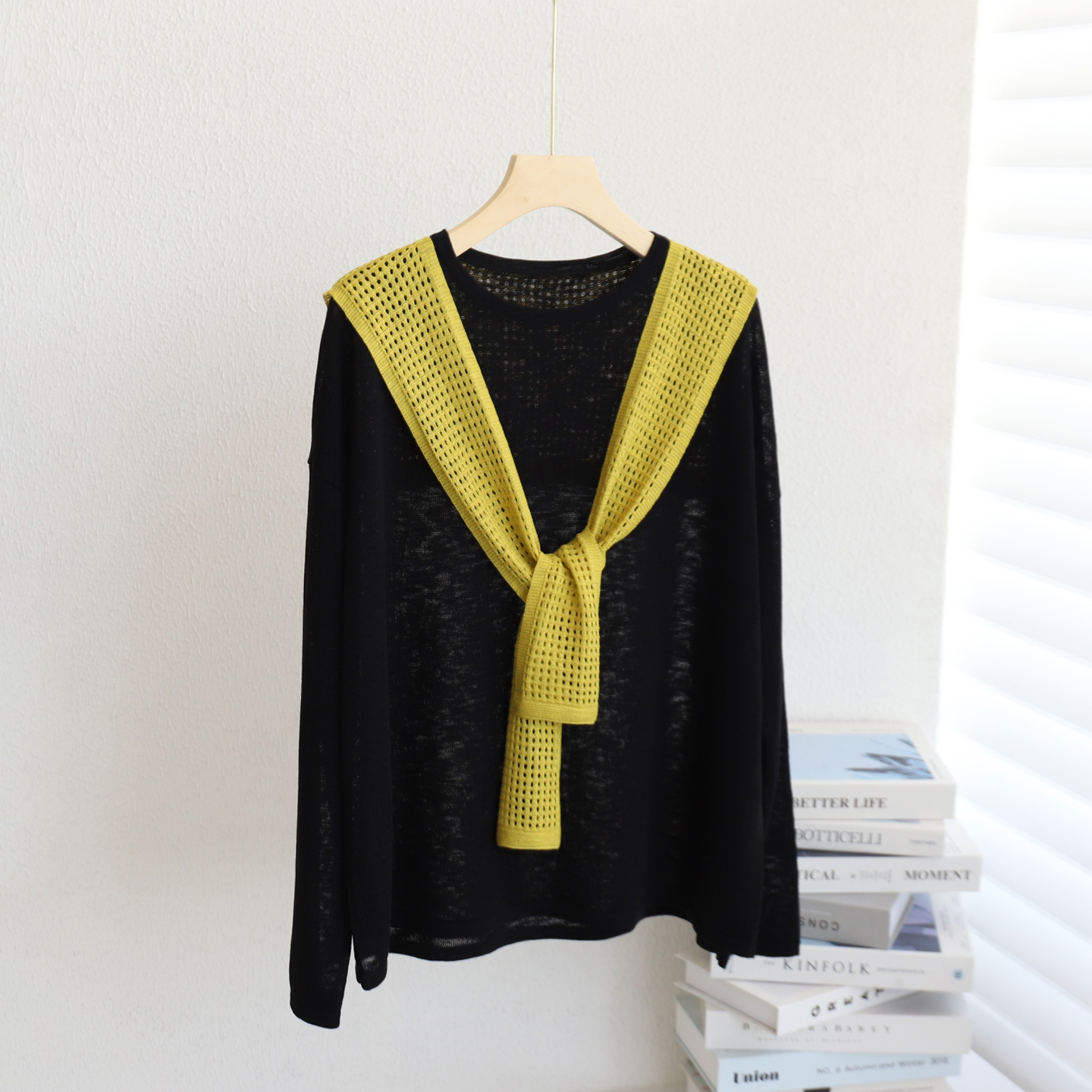 内搭毛衣别致小众打底衫 拼色羊毛长袖 修身 女2025秋冬新款 针织衫