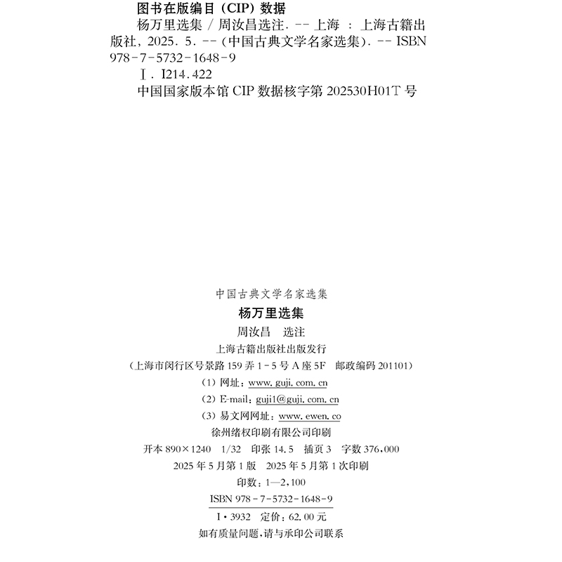 杨万里选集周汝昌选注中国古诗词上海古籍出版 社凤凰新华书店旗舰店
