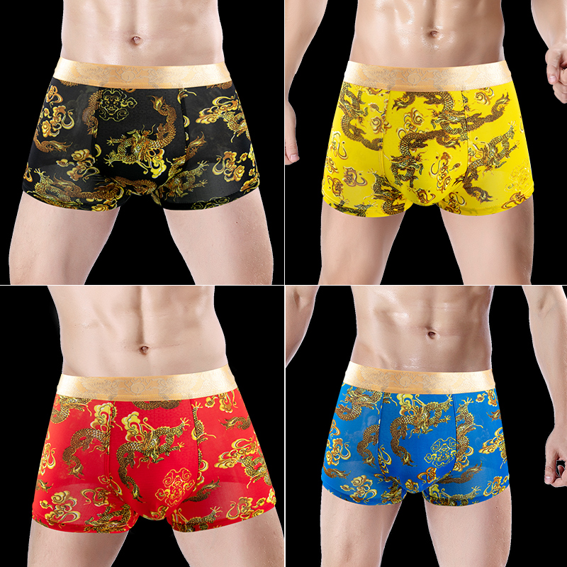 薄款 夏季 透气无痕四角裤 男生抗菌平角大码 头 猫人冰丝内裤 短裤 男士