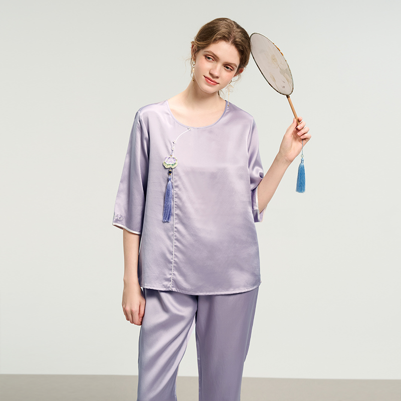 重磅夏桑蚕丝新中式 芳香型 国风丝绸家居服 女 美标真丝睡衣套装