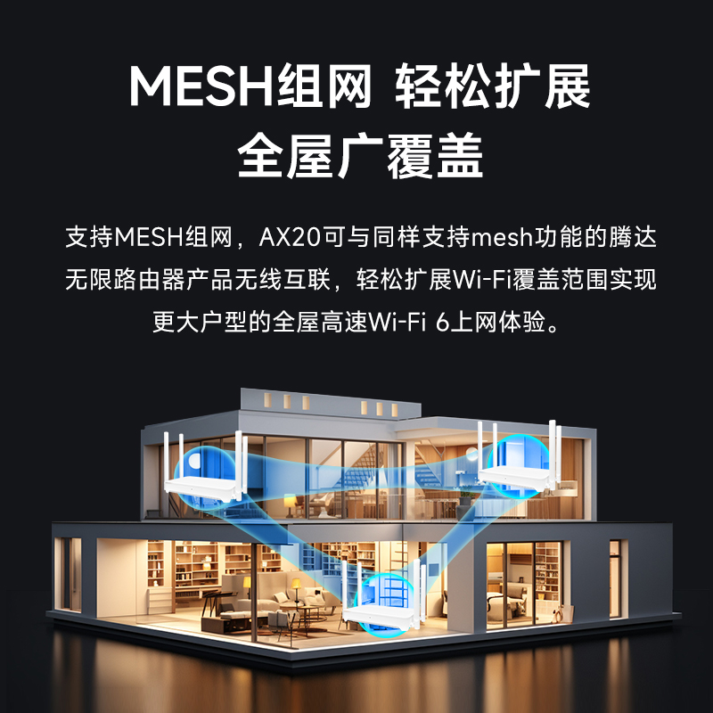 腾达无限AX20无线路由器WiFi6千兆端口家用高速穿墙王5G双频AX1500M大户型功率全屋覆盖电信移动超强信号宽带