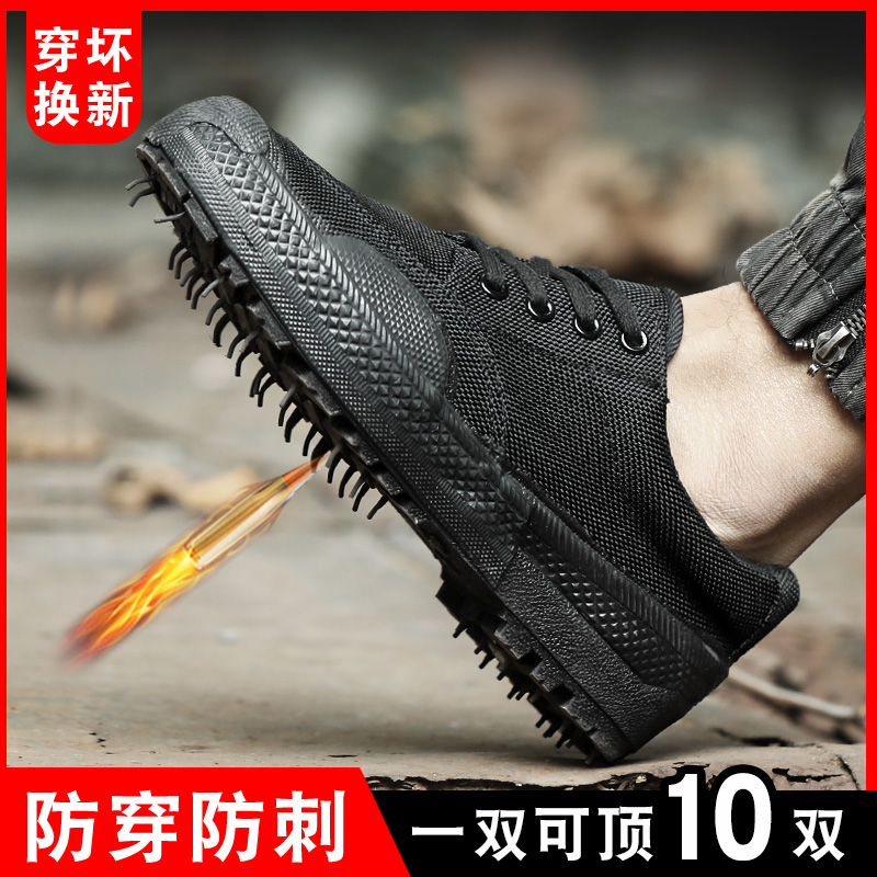 防臭帆布解放鞋 轻便透气工作鞋 女 男防刺穿耐磨工地干活鞋 劳保胶鞋