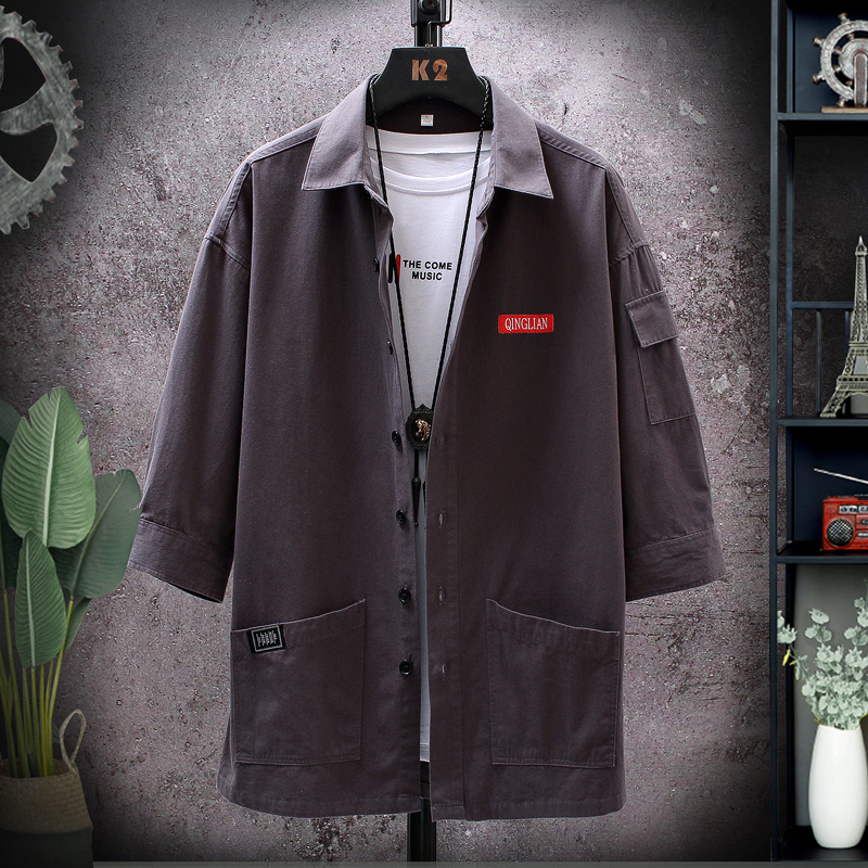 衬衫 短袖 男士 宽松休闲衬衣帅气寸衫 潮流上衣服 2025七分袖 韩版 工装