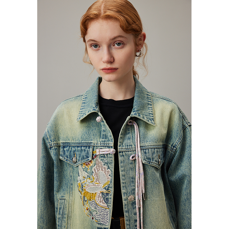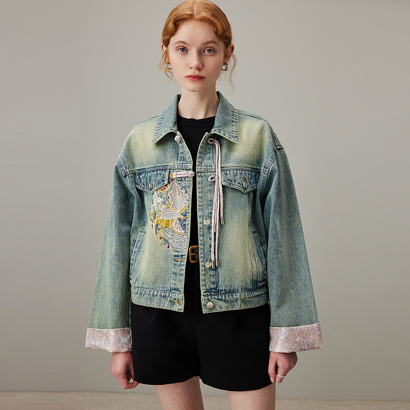 刺绣复古做旧短款 2025新款 夹克上衣 国风牛仔外套女秋季 dfvc新中式