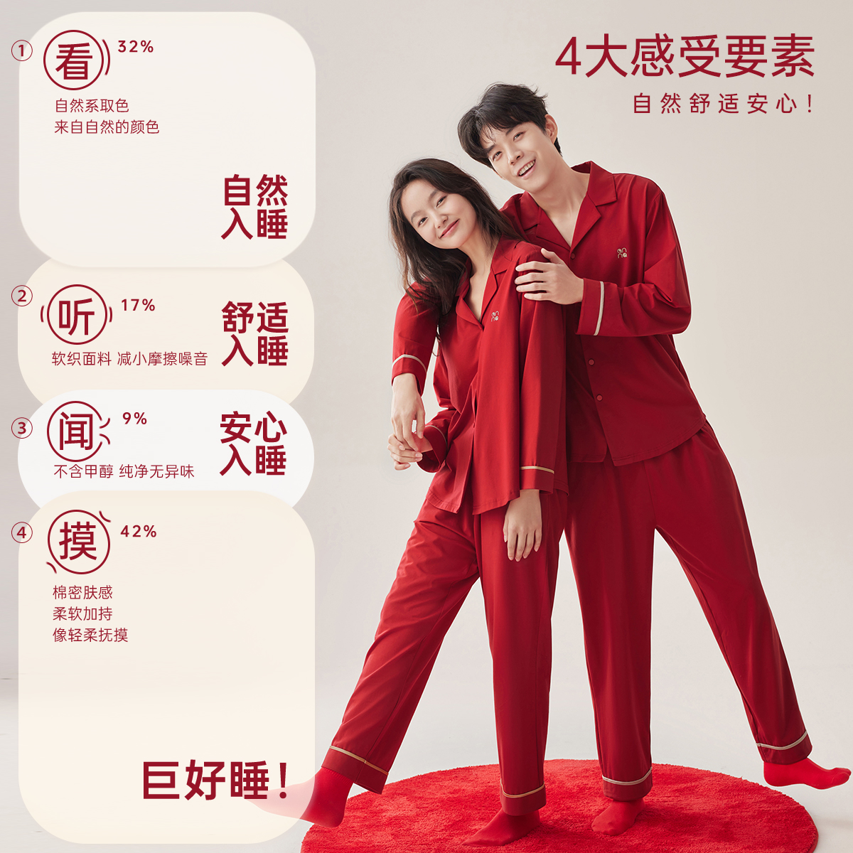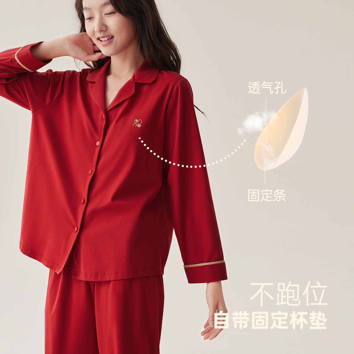 安之伴 莫代尔带胸垫红色睡衣结婚新婚情侣女春秋家居服 巨柔软