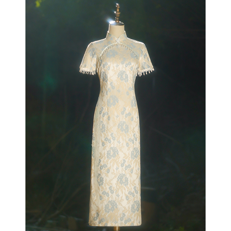 栀花清梦 杏色立领盘扣旗袍连衣裙开衫 早秋季 新中式 女 新款 乔拉