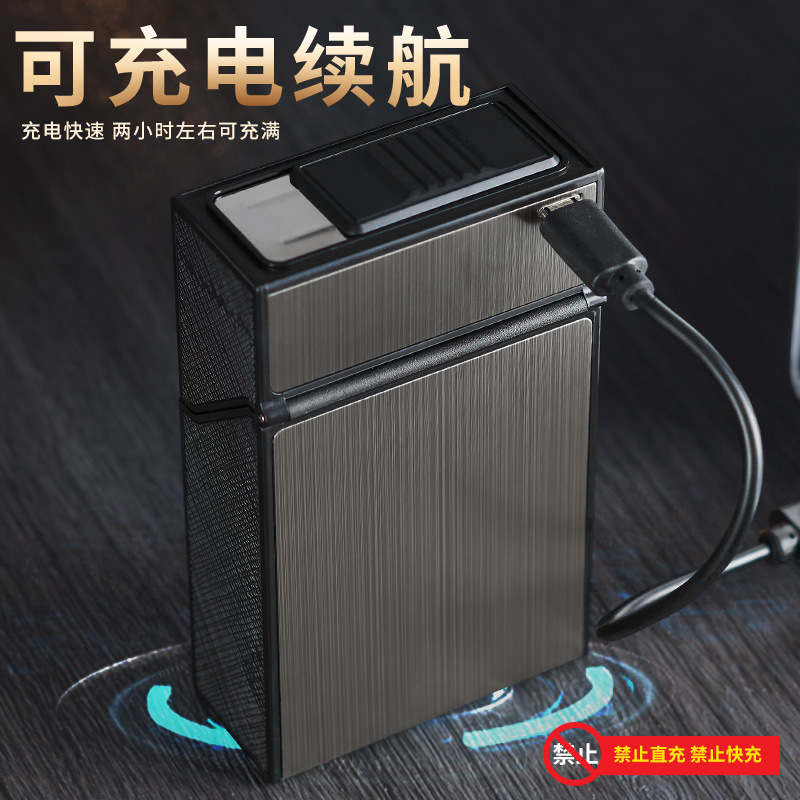 充电烟盒打火机一体防风大容量20支装 翻盖抗压防潮创意烟套盒高档