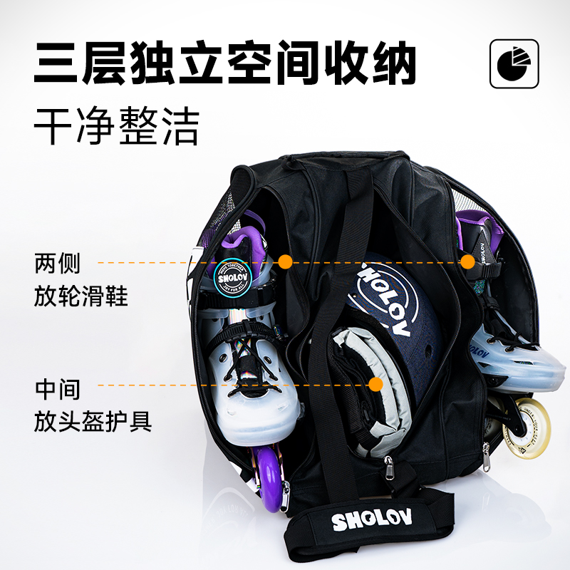 单肩包直排轮鞋 儿童成人轮滑三层背包溜冰鞋 包 收纳包升级款 轮滑鞋