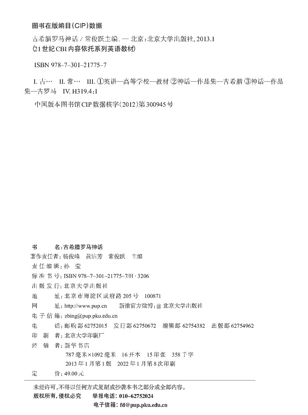 意义 主要神话人物故事 建构合理 古希腊罗马神话 北京大学旗舰店正版 学习希腊罗马神话 人文知识结构 CBI内容依托系列英语教材