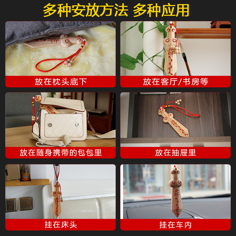 正宗纯桃木剑挂件老料朱砂七星婴儿童卧室客厅随身中式 手工一体剑