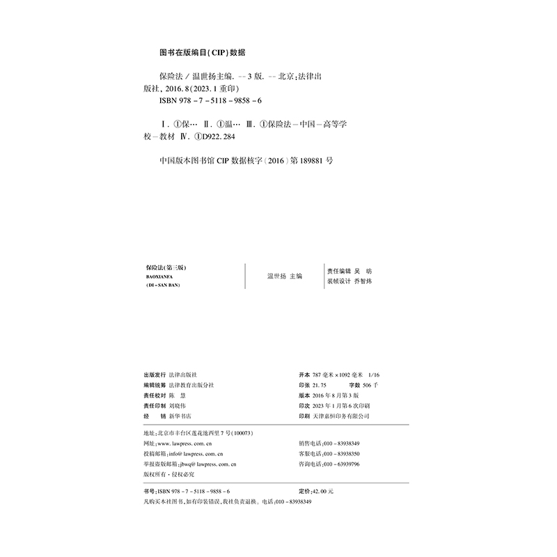 2017年修订 第三版 温世扬 普通高等教育法学规划教材 社9787511898586 法律社新书 法律出版 保险法