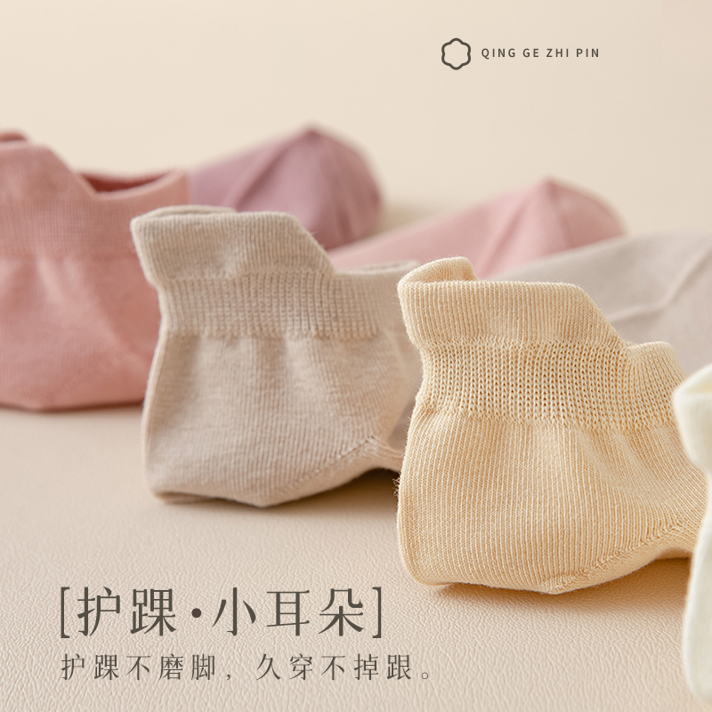 纯棉船袜子女春秋季 透气隐形袜无骨 不掉跟硅胶防滑短袜浅口夏薄款