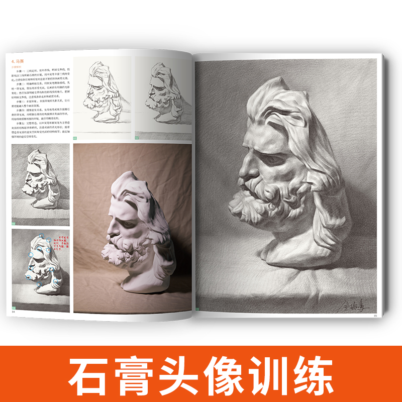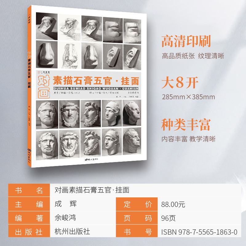 对画素描石膏五官挂面 一线教学余峻鸿结构步骤完整稿対画临摹素描书籍