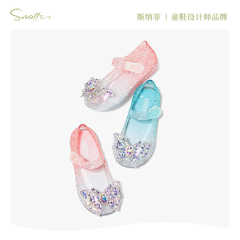 爱莎公主夏季 斯纳菲女童果冻凉鞋 女孩沙滩宝宝包头凉鞋 闪灯鞋