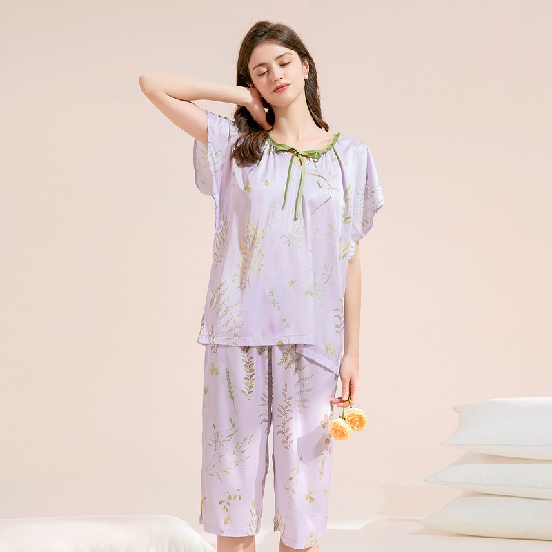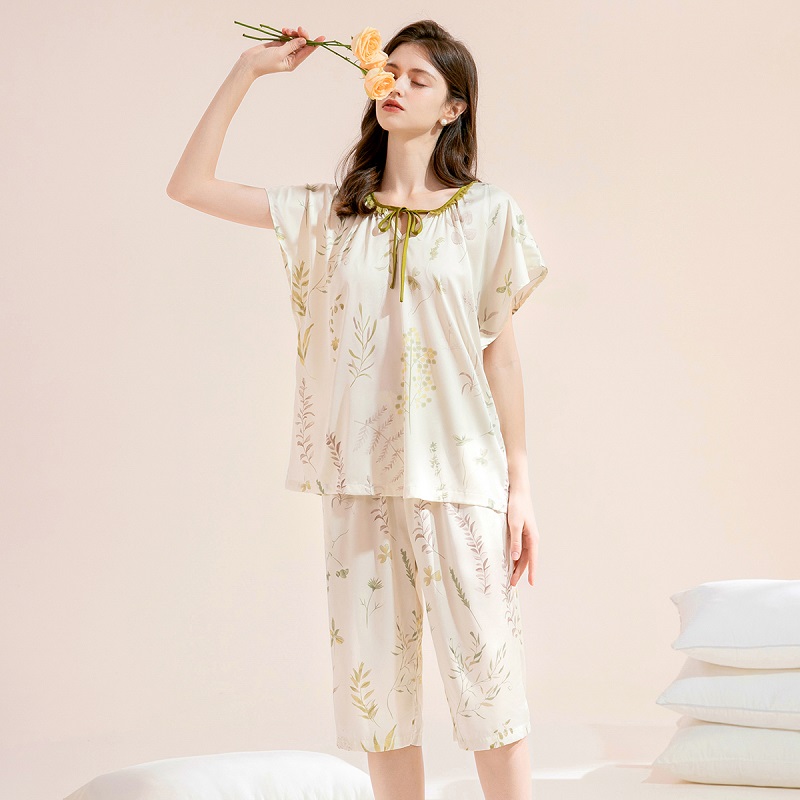 短袖 芬腾2025年夏季 七分裤 女士家居服套装 冰丝可外穿薄睡衣 新款