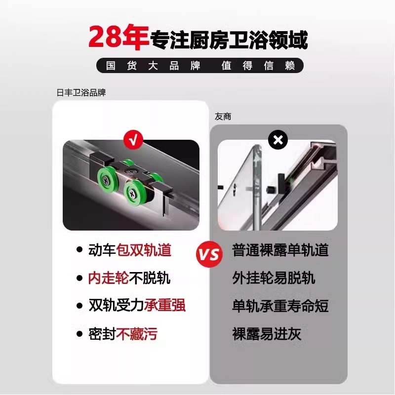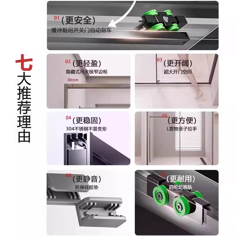 日丰一字型淋浴房玻璃门卫生间干湿分离隔断屏风浴室下沉式 推拉门