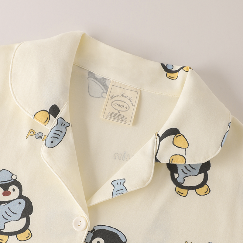 长袖 2025新款 纯棉大码 套装 可爱企鹅可外穿家居服 女款 睡衣女春秋季
