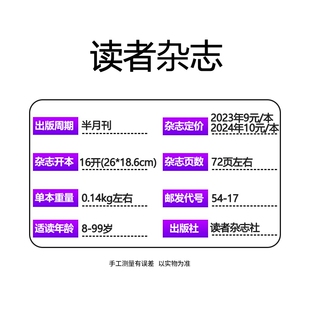 10月1 读者初中版 20期 半年订阅 学生作文素材意林青年文摘高考励志文学文摘合订本过期刊2024年 2026全年 读者杂志2025年1