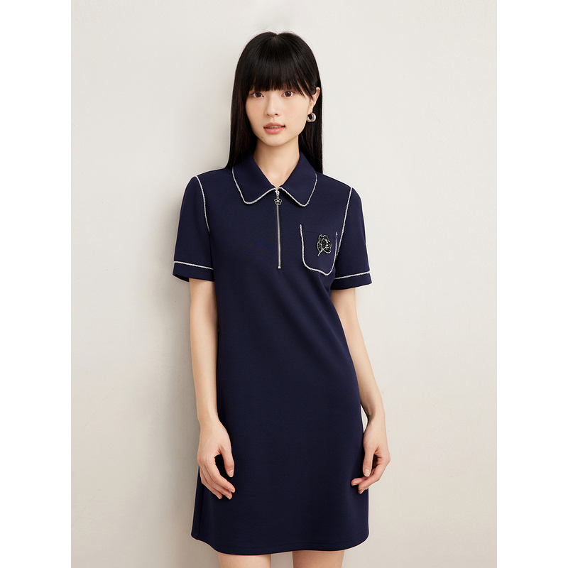 连衣裙 百搭POLO领针织刺绣LOGO短袖 Goodland美地女装 夏季
