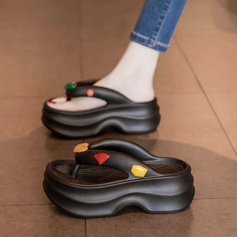 踩屎感人字拖 海边沙滩凉鞋 厚底增高小个子凉拖鞋 女夏外穿2025新款