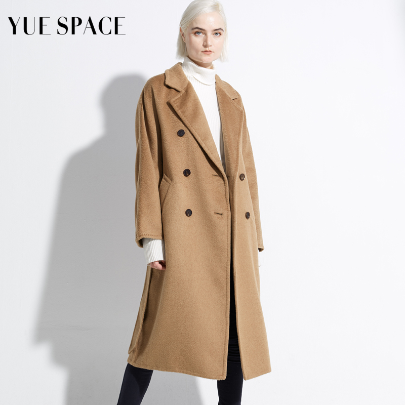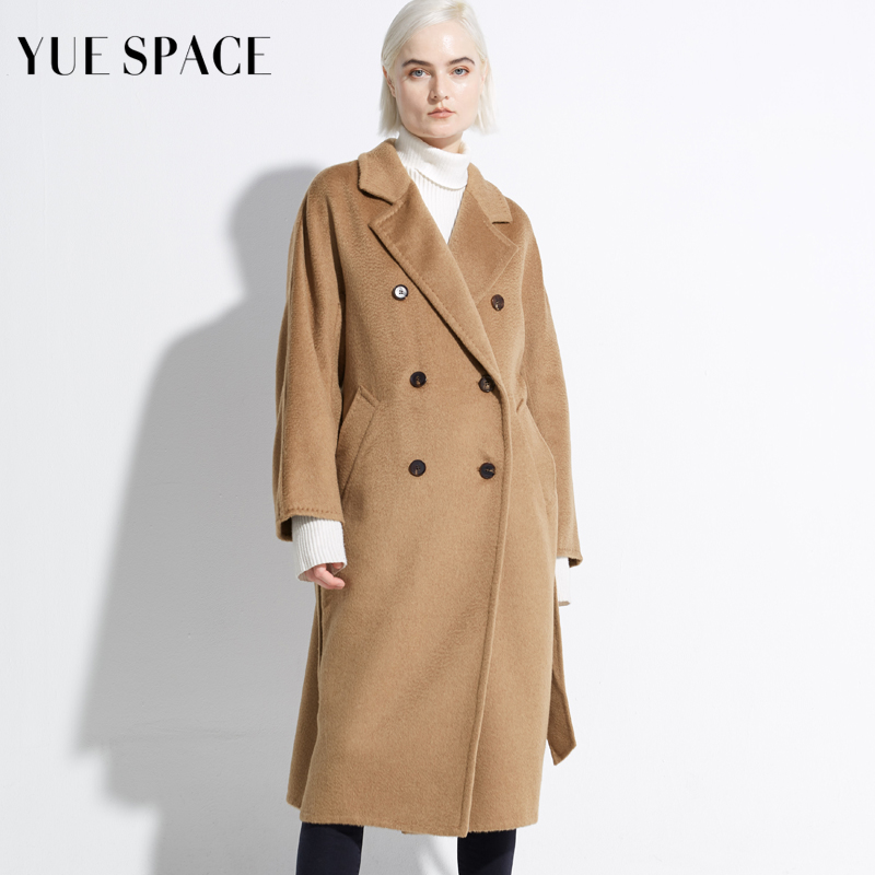 秋冬外套 过膝宽松女时尚 YUESPACE双面骆驼绒大衣西装 领双排扣长款