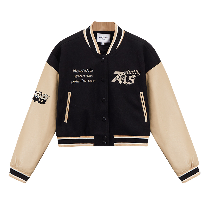 秋新美式 潮牌棒球服女短款 清仓 复古学院风刺绣宽松PU外套 特价