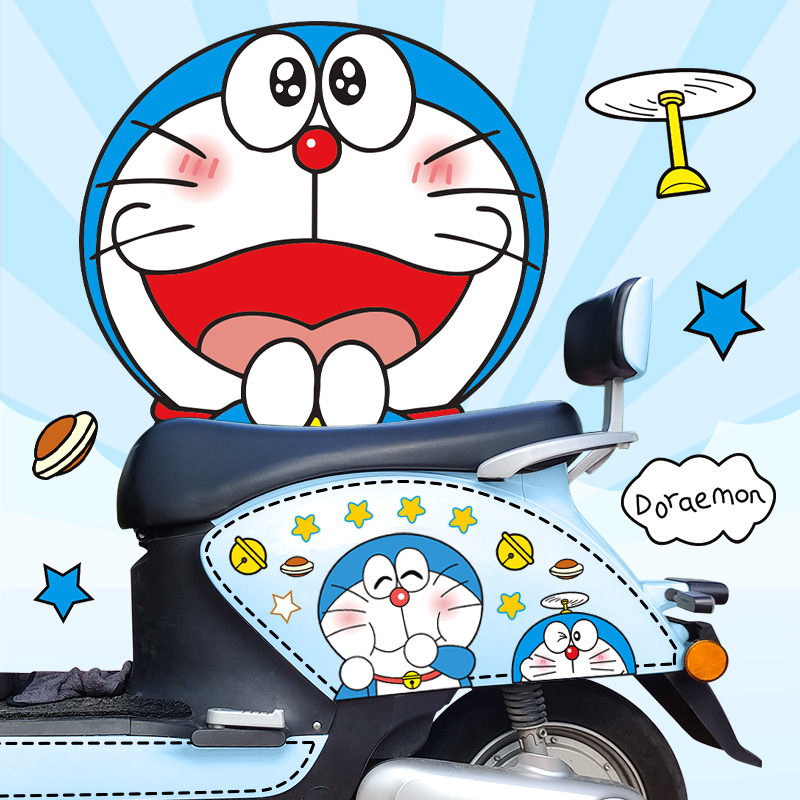 叮当猫电动车贴纸雅迪台铃爱玛电瓶车贴耳朵装 饰防水防晒汽车贴纸